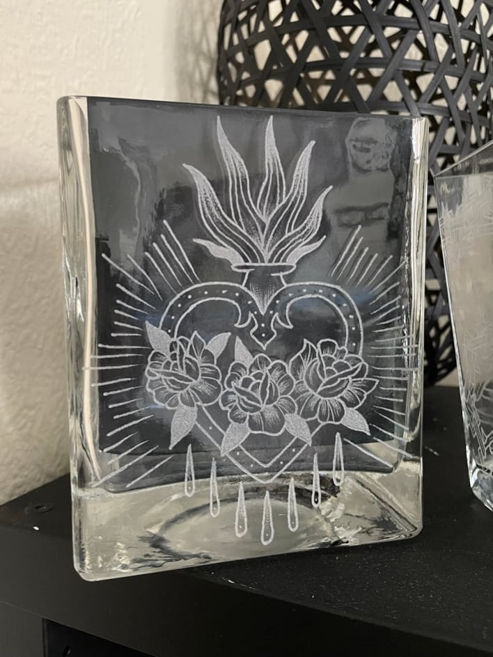 Glass Vase with Sacred Heart engraved design